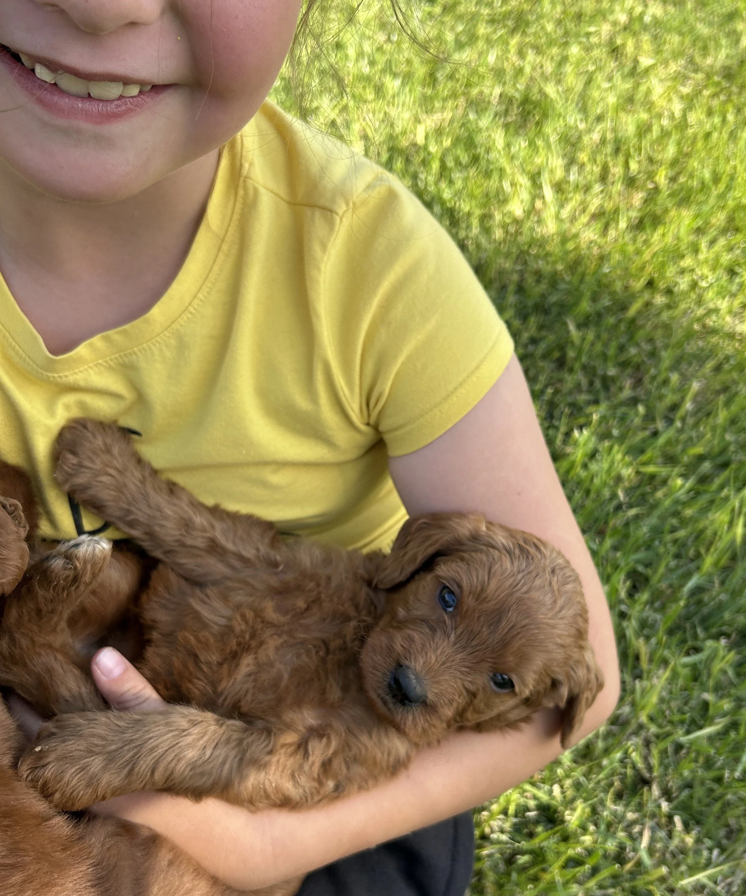 F1B Labradoodles (75% Poodle and 25% Labrador) are virtually shed free and very hypoallergenic! This breed is wonderful with kids and other pets. For prices, please contact us or call/text 928-965-3948.